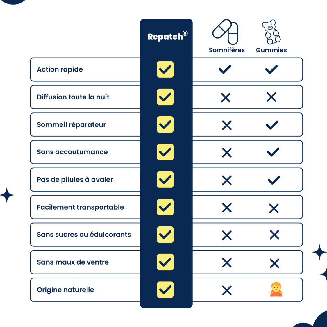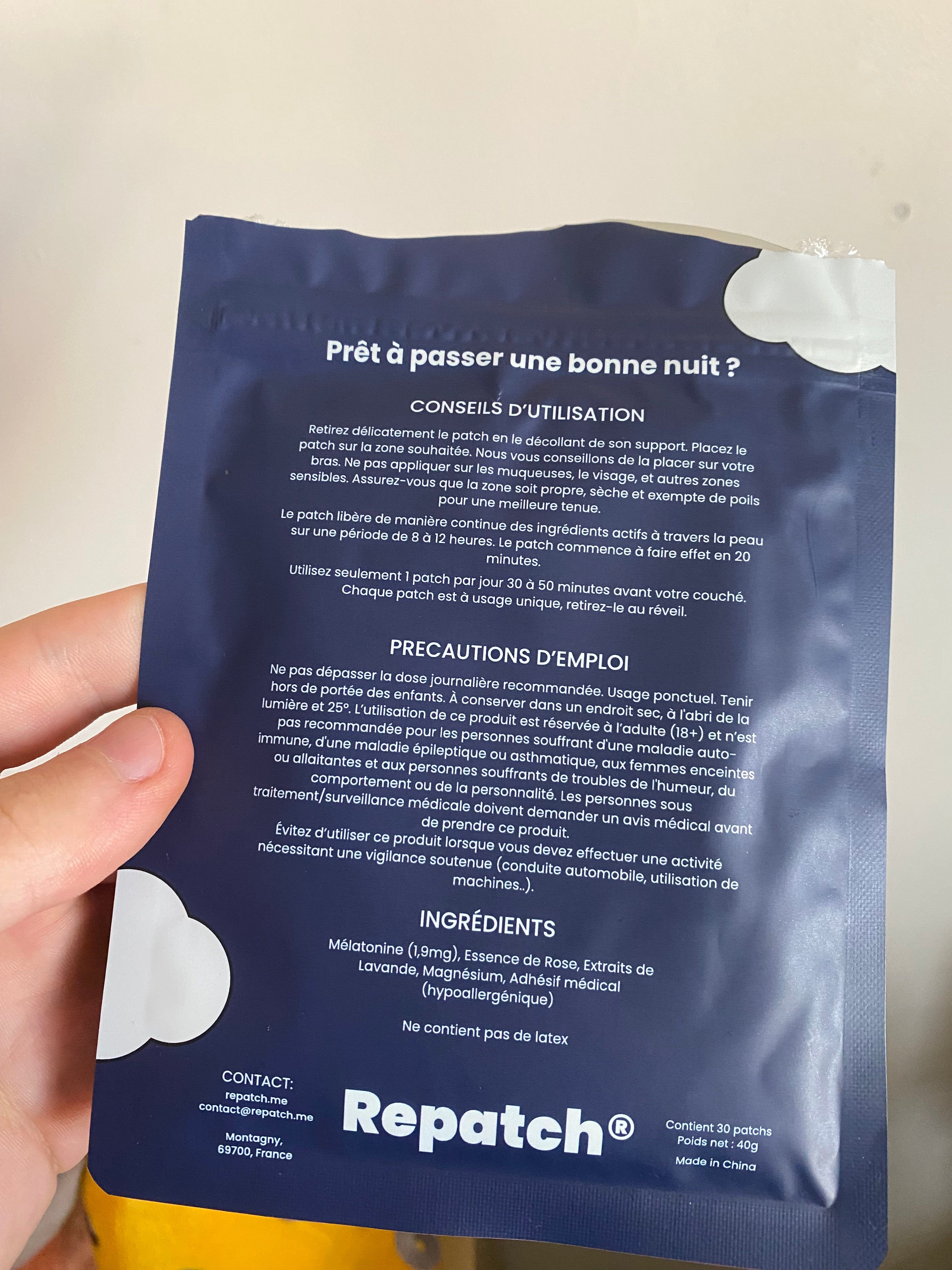 C'est l'avantage du patch par rapport à des pilules que vous prendriez avant de dormir, cela permet aussi de ne pas avoir à avaler de cachet avant de dormir.
